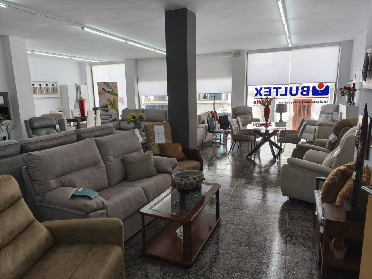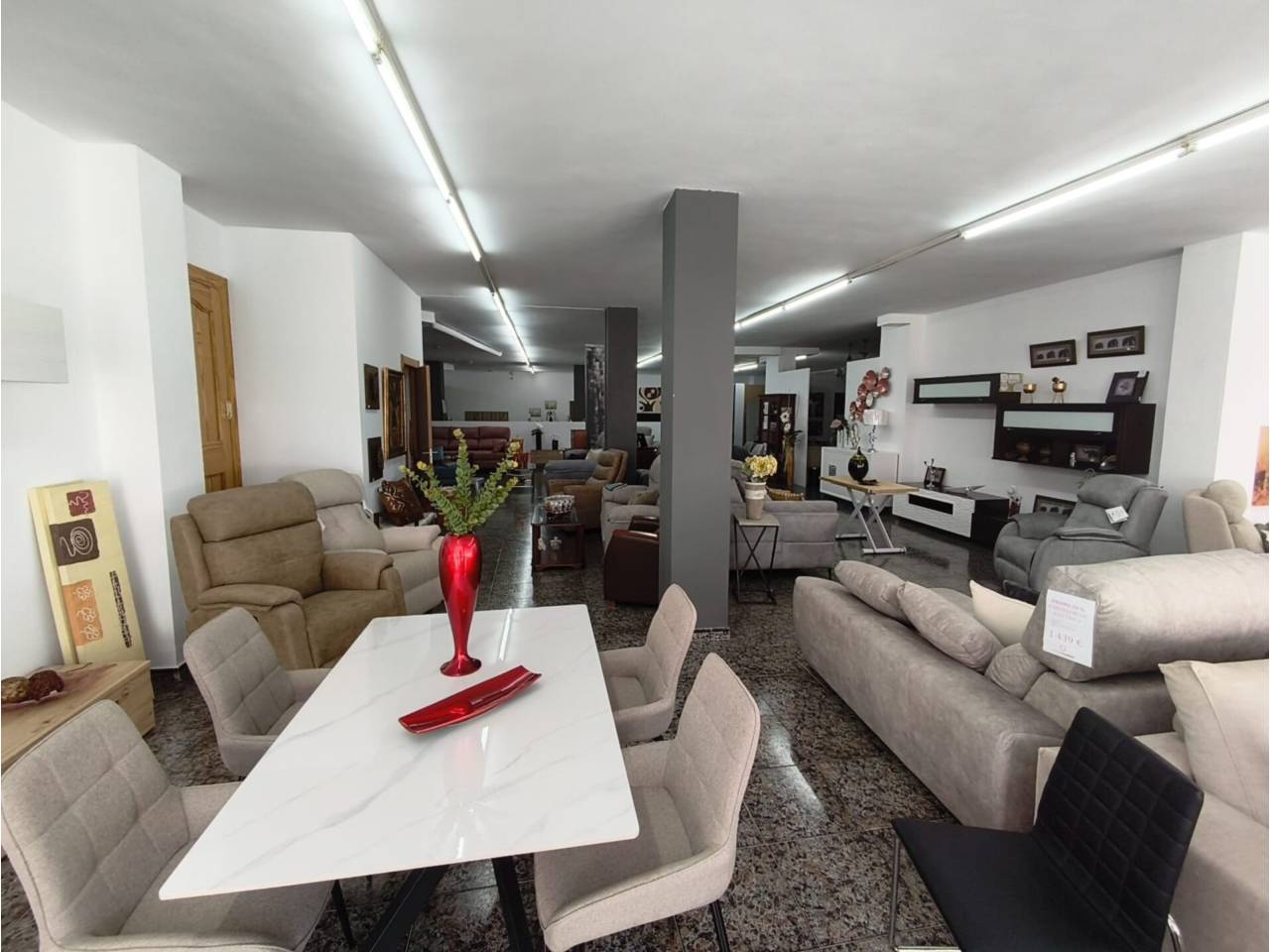 A la venta excelente local comercial, actualmente en funcionamiento como tienda de mobiliario. Local totalmente adaptado y terminado en el que se mantiene la actividad de venta de mobiliario desde hace mas de 30 años.