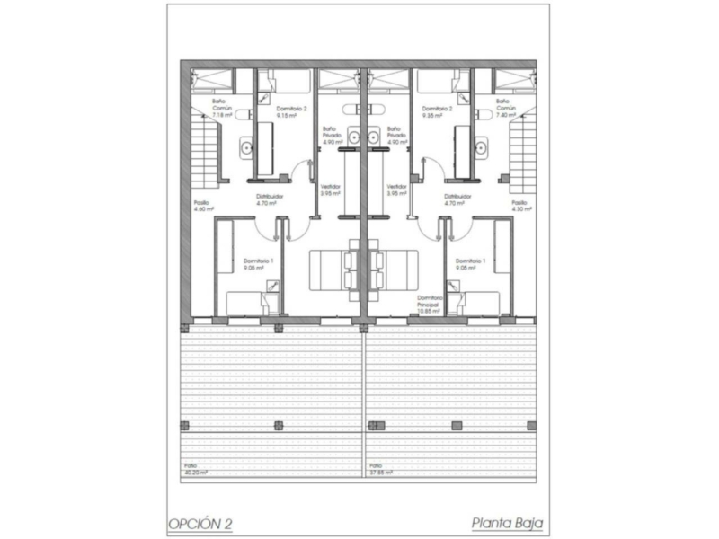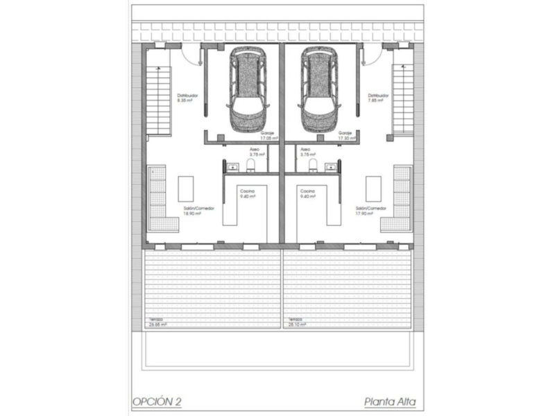 Las viviendas cuentan con terraza en la planta superior y acceso desde el salon y la cocina de mas de 25 metros cuadrados con impresionantes vistas abiertas y con un porche cubierto en la planta baja de similares dimensiones a las terrazas ademas de un patio descubierto de 15 metros cuadrados aproximadamente.